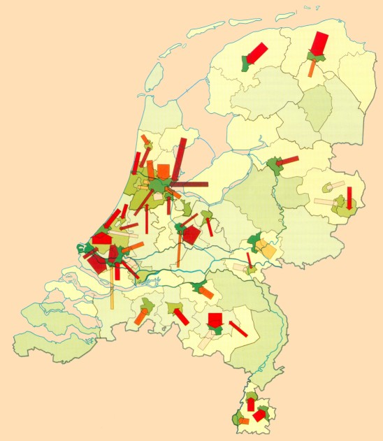 | Tussen 1975 en 1981 is het pendelen tussen wonen en werken toegenomen. Dat was vooral het geval in het westen: Een van de gevolgen van suburbanisatie. |